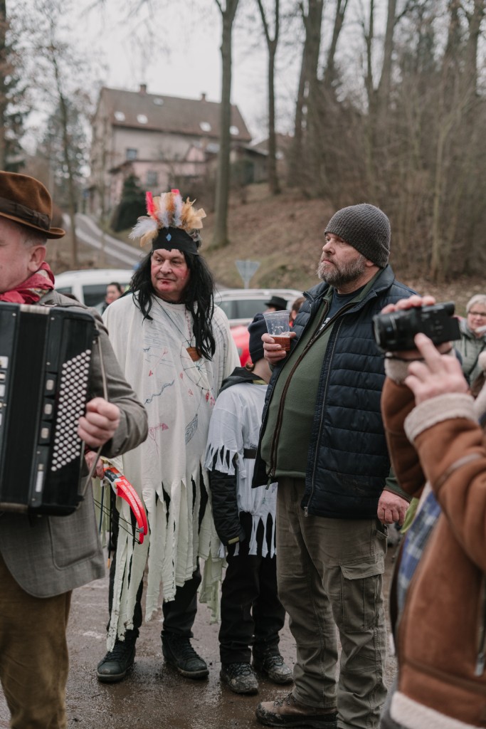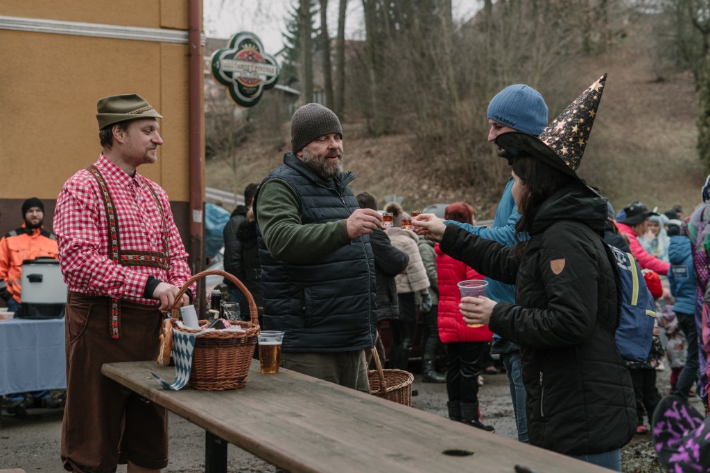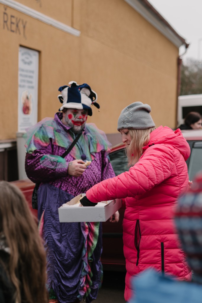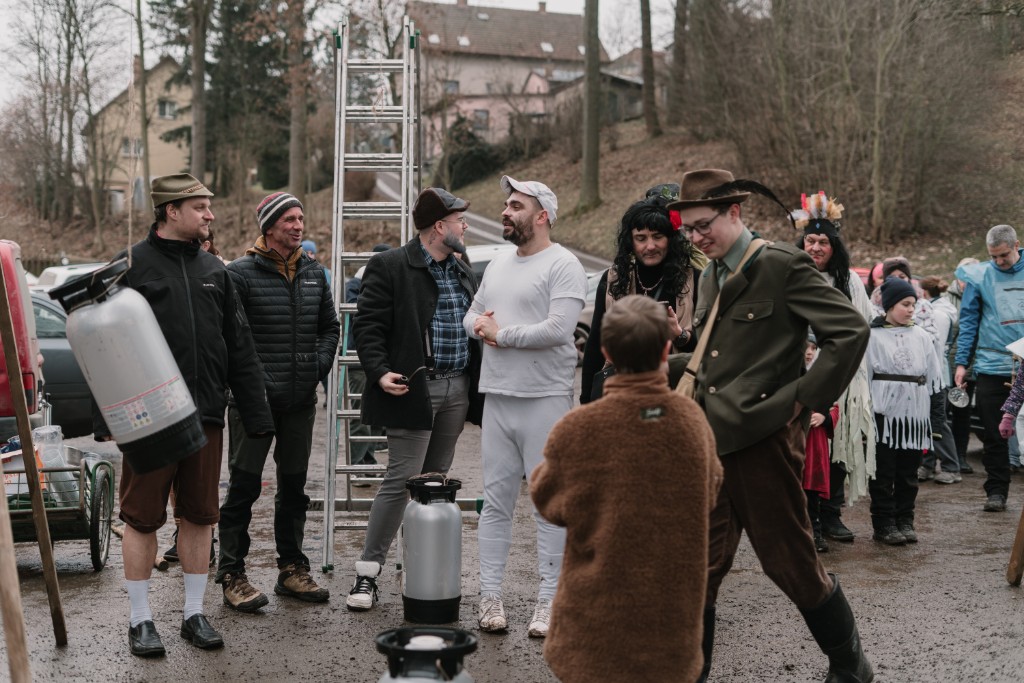 Masopustní průvod letos startoval na Přibiňovsi u kontejnerů, přes Přibiňský most, pod budovou chovatelů a moštárnou směrem do Malvařic až k hospodě U řeky.