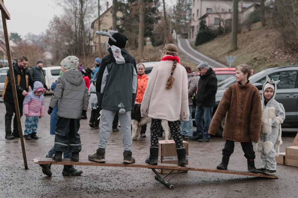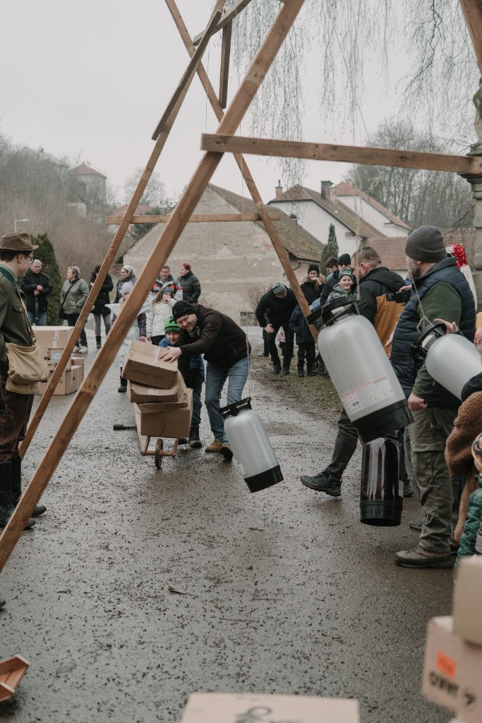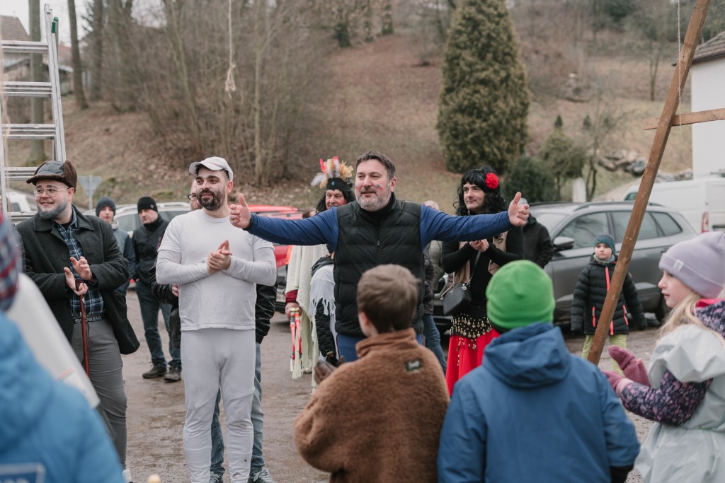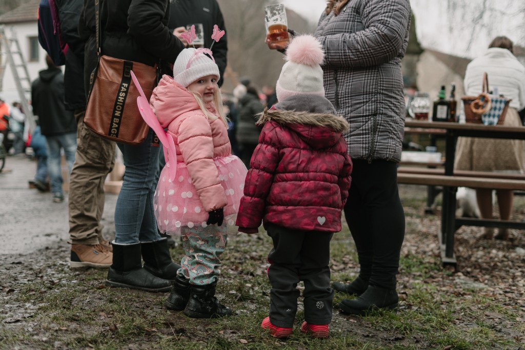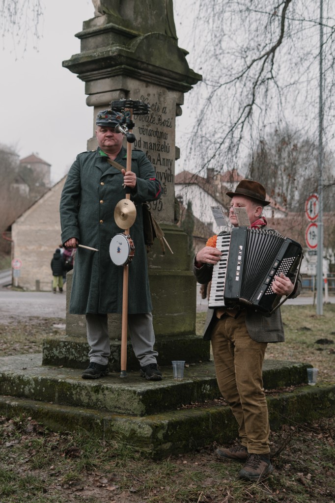Masopustní průvod letos startoval na Přibiňovsi u kontejnerů, přes Přibiňský most, pod budovou chovatelů a moštárnou směrem do Malvařic až k hospodě U řeky.