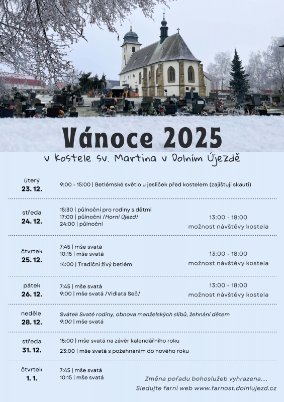 Od 18.12.2025 do 2.1.2025 bude pro veřejnost zavřeno.