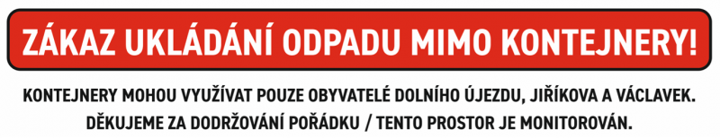 VE SBĚRNÉM DVOŘE JE POVOLENO UKLÁDÁNÍ ODPADŮ POUZE Z BĚŽNÉHO PROVOZU DOMÁCNOSTÍ Z DOLNÍHO ÚJEZDA, JIŘÍKOVA A VÁCLAVEK.