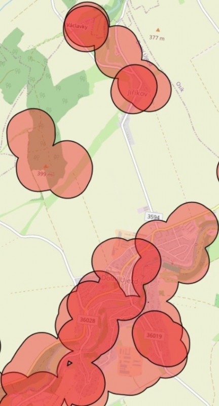 V naší obci se toto omezení týká jak Dolního Újezdu, tak i části Jiříkova a Václavek - viz. přiložená mapa.