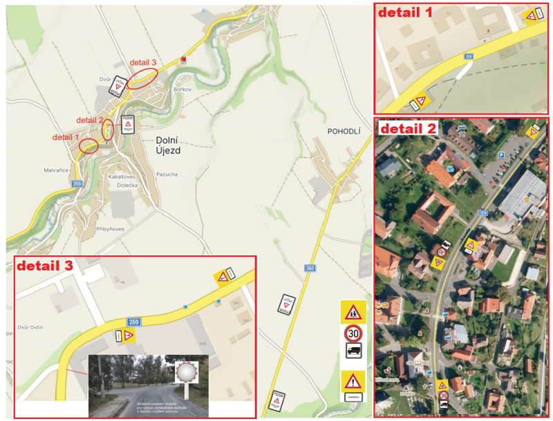 Po jednání s dopravní Policií se podařilo alespoň vyjednat snížení rychlosti na 30 km/ hod. pro nákladní vozidla ve středu obce v prostoru školy. Dále instalaci značek upozorňujících na chodce u vyústění uličky z Malvařic před muzeem + před nákupním střediskem COOP a v prostoru zastávky u Lihovaru. Dále bude přidáno i zrcadlo na výjezdu ze silnice od Zemědělské družstva směrem do esíčka u Lihovaru. Součástí opatření je i instalace značek upozorňujících na omezenou nosnost Pražského mostu. Tyto značky jsou osazeny na křižovatce u hasičské zbrojnice a na křižovatce od Pohodlí.