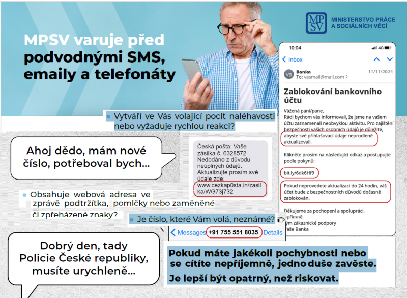 Varování před podvodnými SMS, emaily a telefonáty